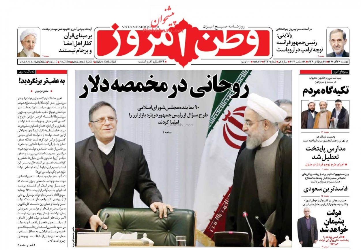 • پیشخوان اخبار روز دوشنبه 27 آذر 96