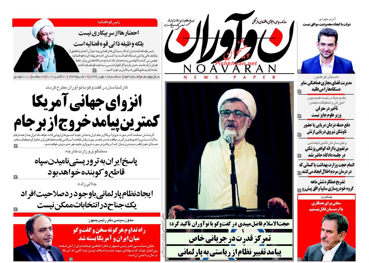• پیشخوان اخبار روز سه شنبه 18 مهر 96