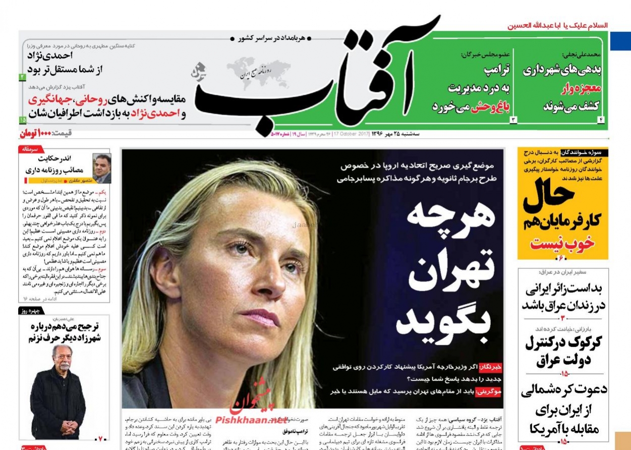 پیشخوان اخبار روز سه شنبه 25 مهر 96