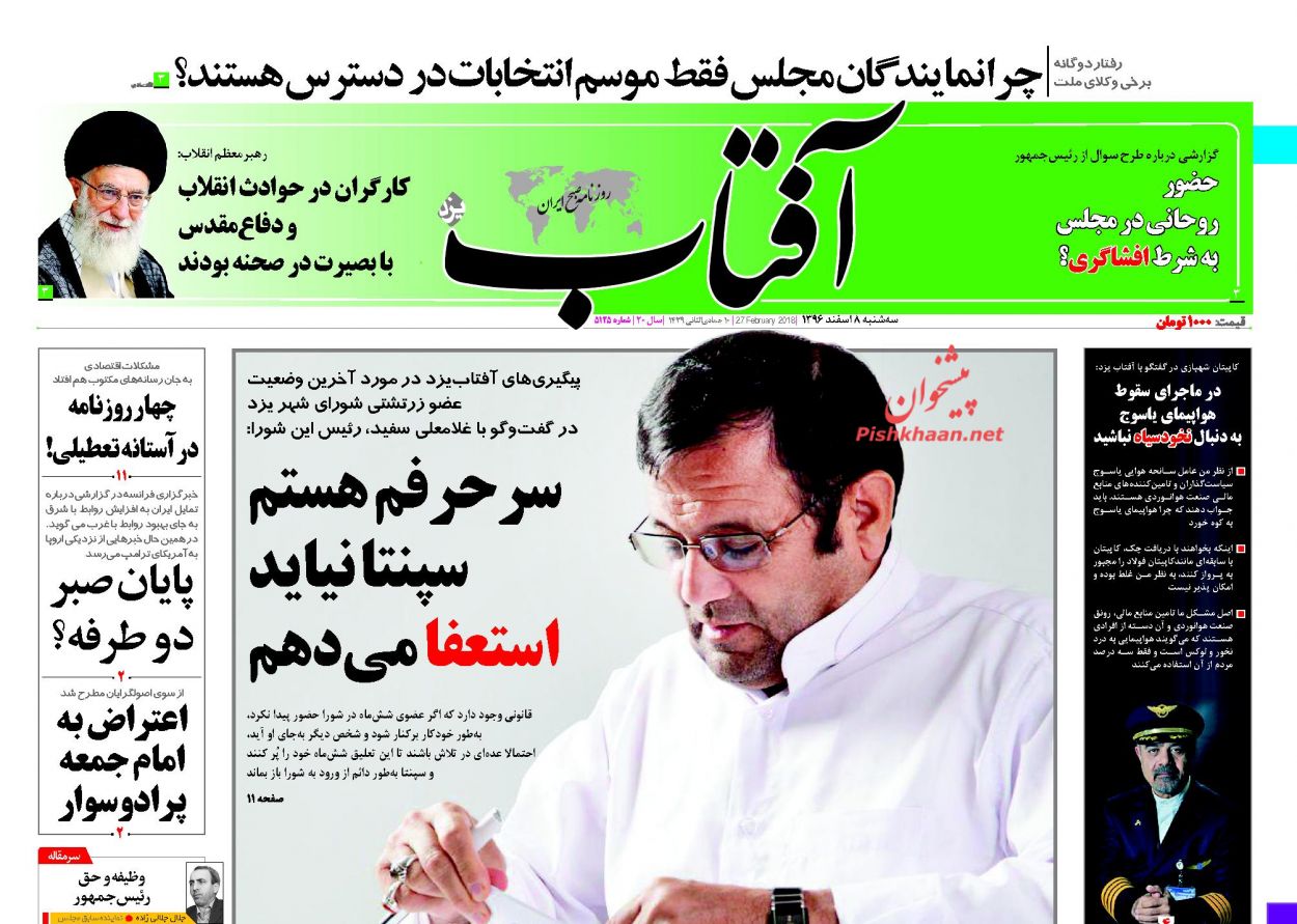 پیشخوان اخبار روز سه شنبه 8 اسفند 96