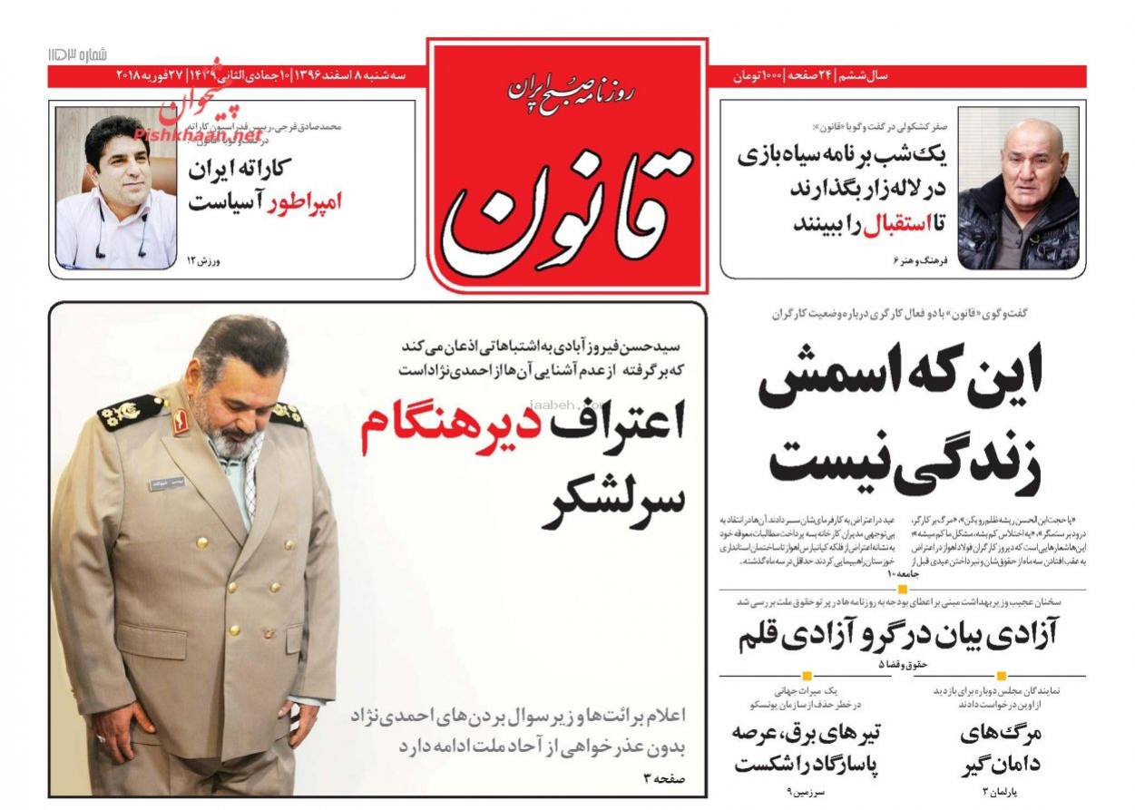 • پیشخوان اخبار روز سه شنبه 8 اسفند 96