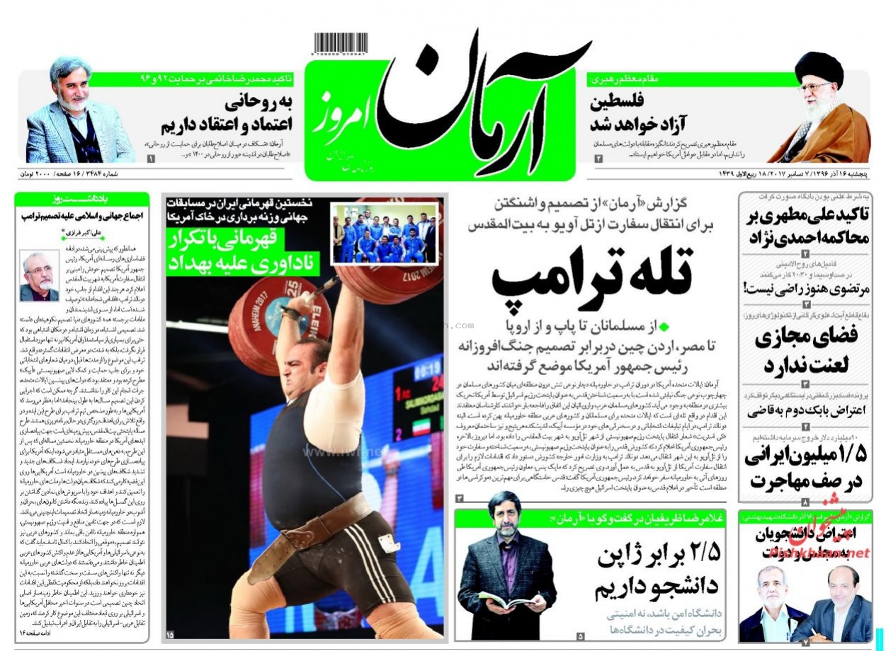 • پیشخوان اخبار روز پنجشنبه 16 آذر 96
