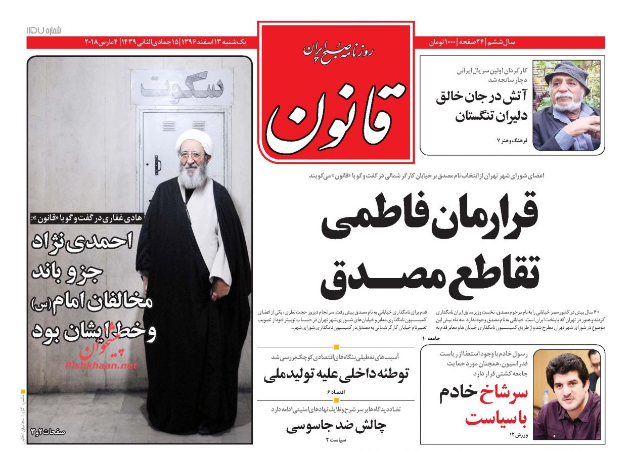 پیشخوان اخبار روز یکشنبه 13 اسفند 96