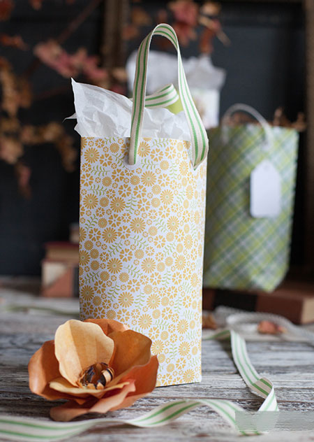 این ساک بسیار ساده است. اما در واقع پایه ای برای انواع تزئینات به سلیقه شخصی شما به شمار می رود. اندازه کاغذ و و رنگ و طرح آن کاملا به سلیقه و نیاز شما بستگی دارد. در انتها می توانید به ساک هایی که درست کرده اید، گل، روبان یا تزئینات دیگر اضافه کنید.